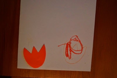 3. Przygotowany szablon kładziemy na kolorowym papierze i odrysowujemy. Jeżeli potrzebujemy więcej elementów tego samego rodzaju - wystarczy kilkakrotnie zgiąć papier i - dzięki temu - wyciąć kilka sztuk na raz.